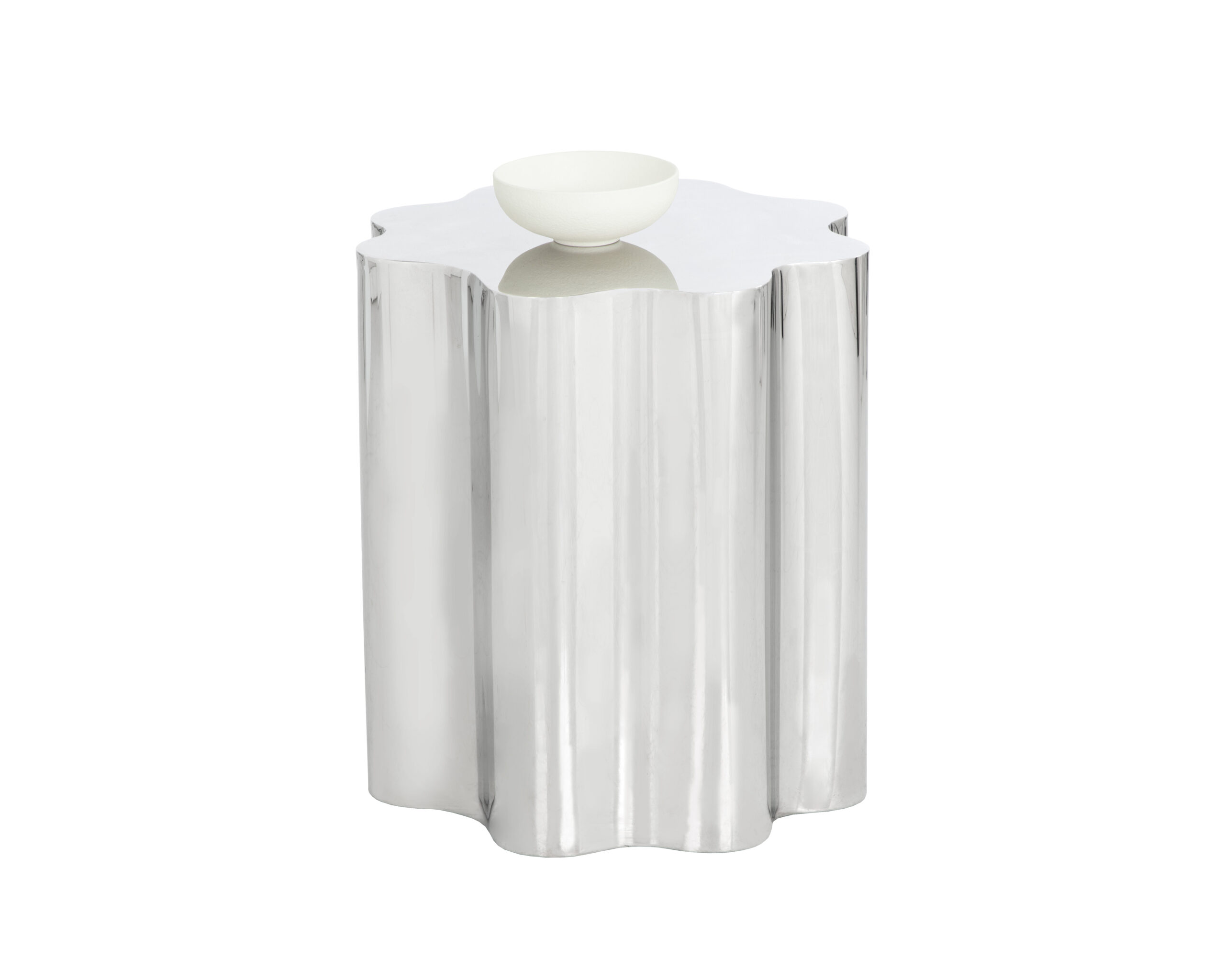 The Dahlia End Table is all about curves. Crafted from stainless steel with a floral inspired design. An elegant and eye-catching piece to elevate any living space.