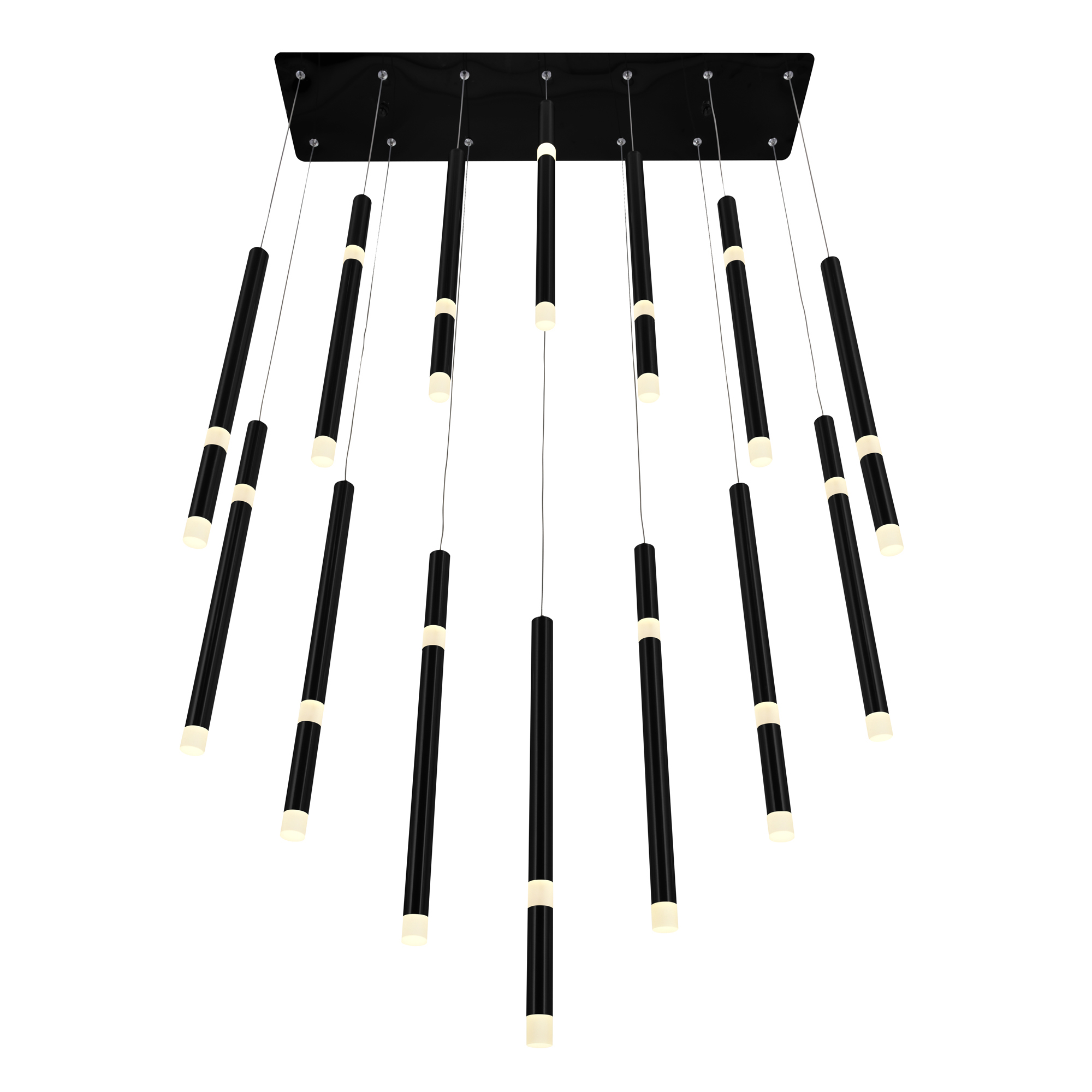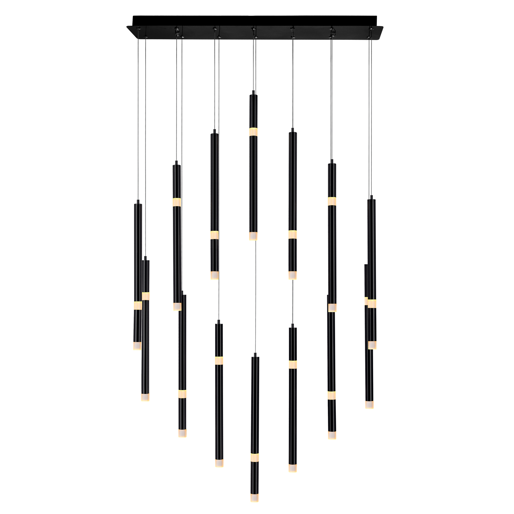 Add personality to your living room with this Flute 14 Light Chandelier in black finish. A rectangular canopy holds 14 chime-like bulbs that are compact and customizable. Adjust the height to create a symmetrical or asymmetrical display of light. The tip of each vertical bar gleams a mellow light perfect for creating a relaxing and inviting ambiance in your living space. Lighting is jewelry for the home, and there is the perfect piece for every room. This fixture is done in a beautiful black finish which could be the missing piece to lighten up and fall in love with your space all over again. Feel confident with your purchase and rest assured. This fixture comes with a three year warranty against manufacturers defects to give you peace of mind that your product will be in perfect condition. Indoor Application Only. Includes Assembly Instructions and Hardware.