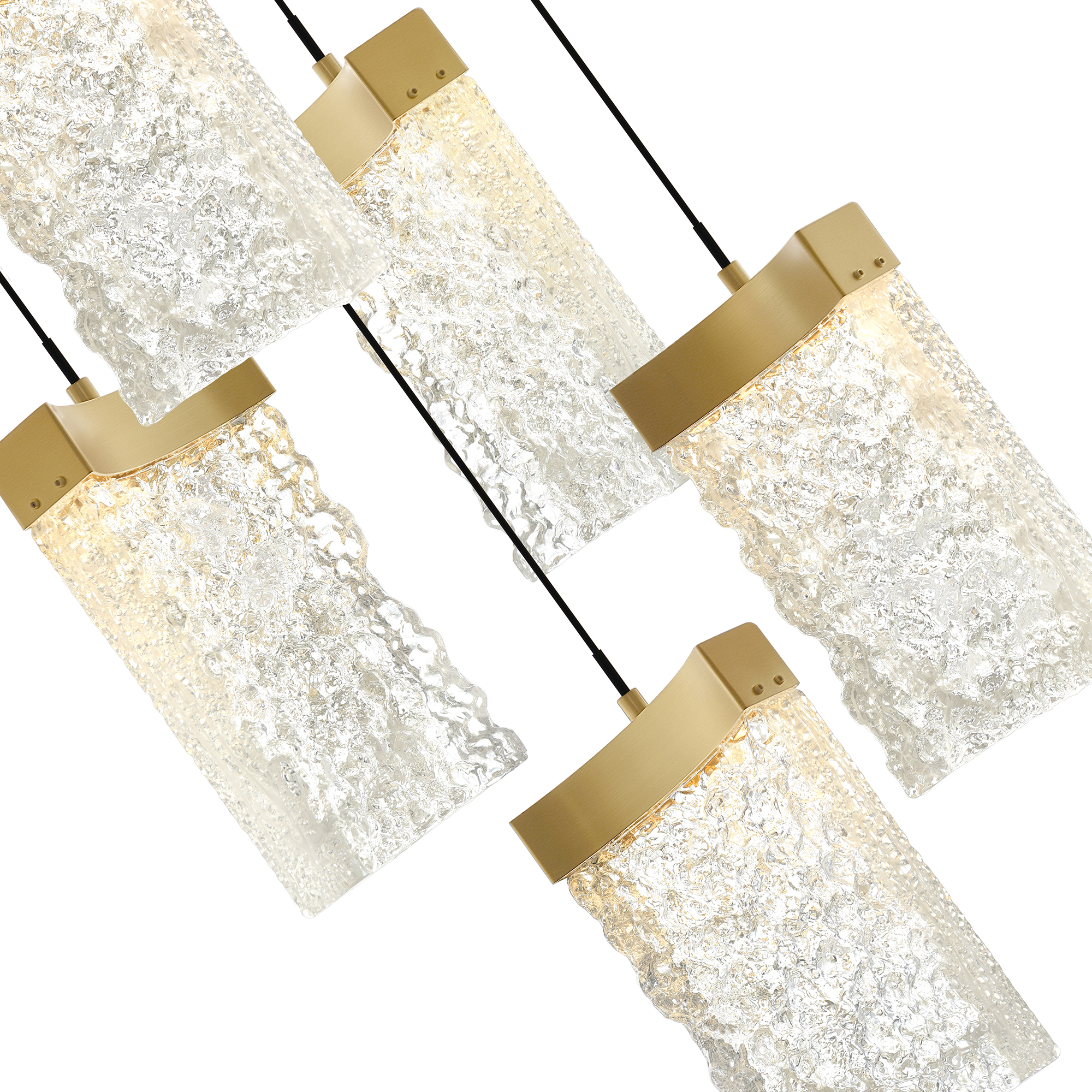 The Lava Integrated LED Mini Pendant is a perfect blend of contemporary design and enduring sophistication. The textured glass pieces, meticulously designed for a sleek aesthetic, adds a touch of modern charm to any space. With adjustable hanging length and beautiful brass finish, this mini pendant stands as a versatile and stylish addition to elevate the atmosphere of any room. Lighting is jewelry for the home, and there is the perfect piece for every room. This fixture is done in a beautiful brass finish which could be the missing piece to lighten up and fall in love with your space all over again. Feel confident with your purchase and rest assured. This fixture comes with a three year warranty against manufacturers defects to give you peace of mind that your product will be in perfect condition. Indoor Application Only. Includes Assembly Instructions and Hardware.