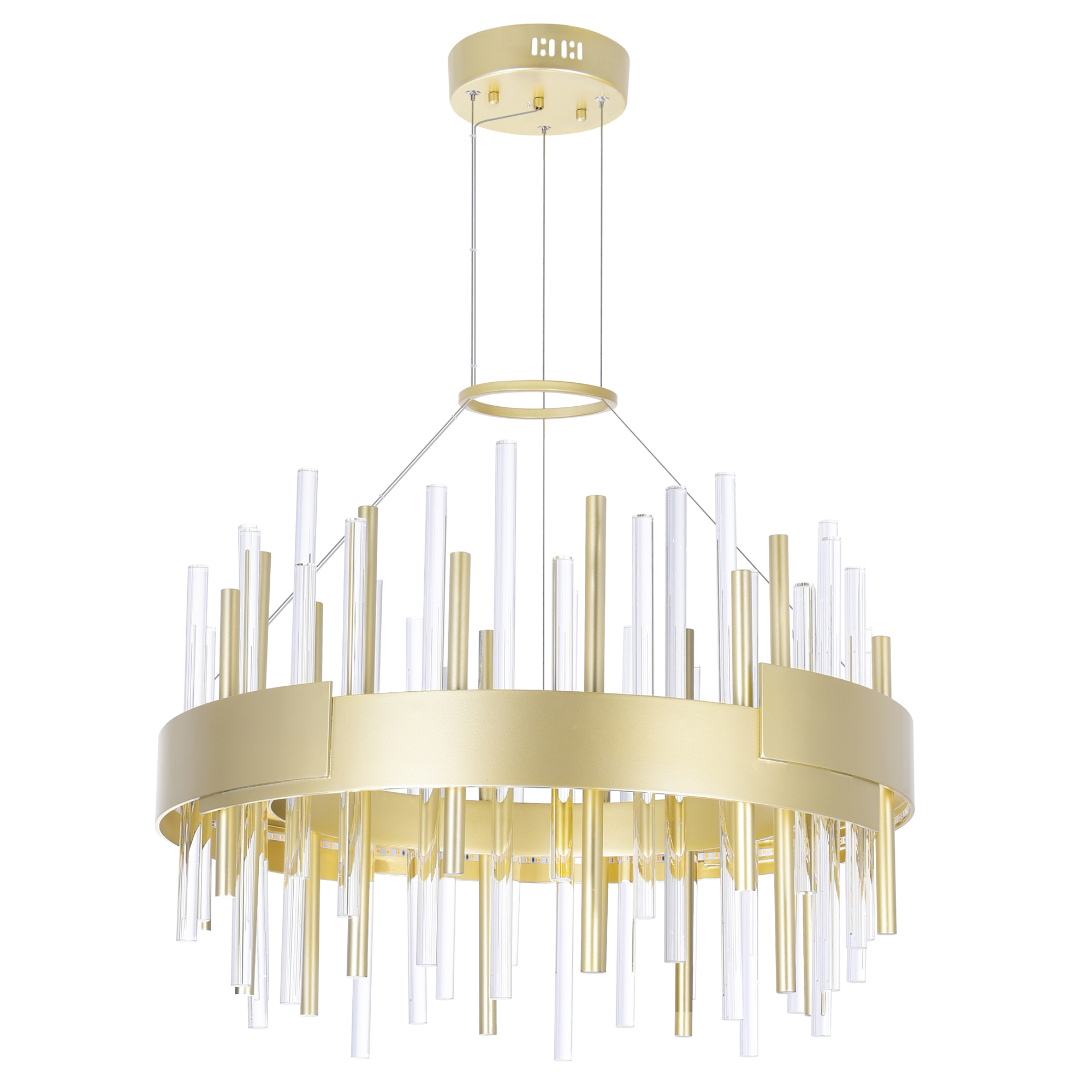 Adding the Millipede 20 inch LED Chandelier to your space is one way to infuse gold glamour into your home. This light source features a central ring made up of overlapping satin gold bands. Running on its top and bottom edges are pairs of slender gold and clear tubes. This is the decorative light fixture to pick to bring a hint of Gilded Age luster to your modern space. Lighting is jewelry for the home, and there is the perfect piece for every room. This fixture is done in a beautiful satin gold finish which could be the missing piece to lighten up and fall in love with your space all over again. Feel confident with your purchase and rest assured. This fixture comes with a three year warranty against manufacturers defects to give you peace of mind that your product will be in perfect condition. Indoor Application Only. Includes Assembly Instructions and Hardware.